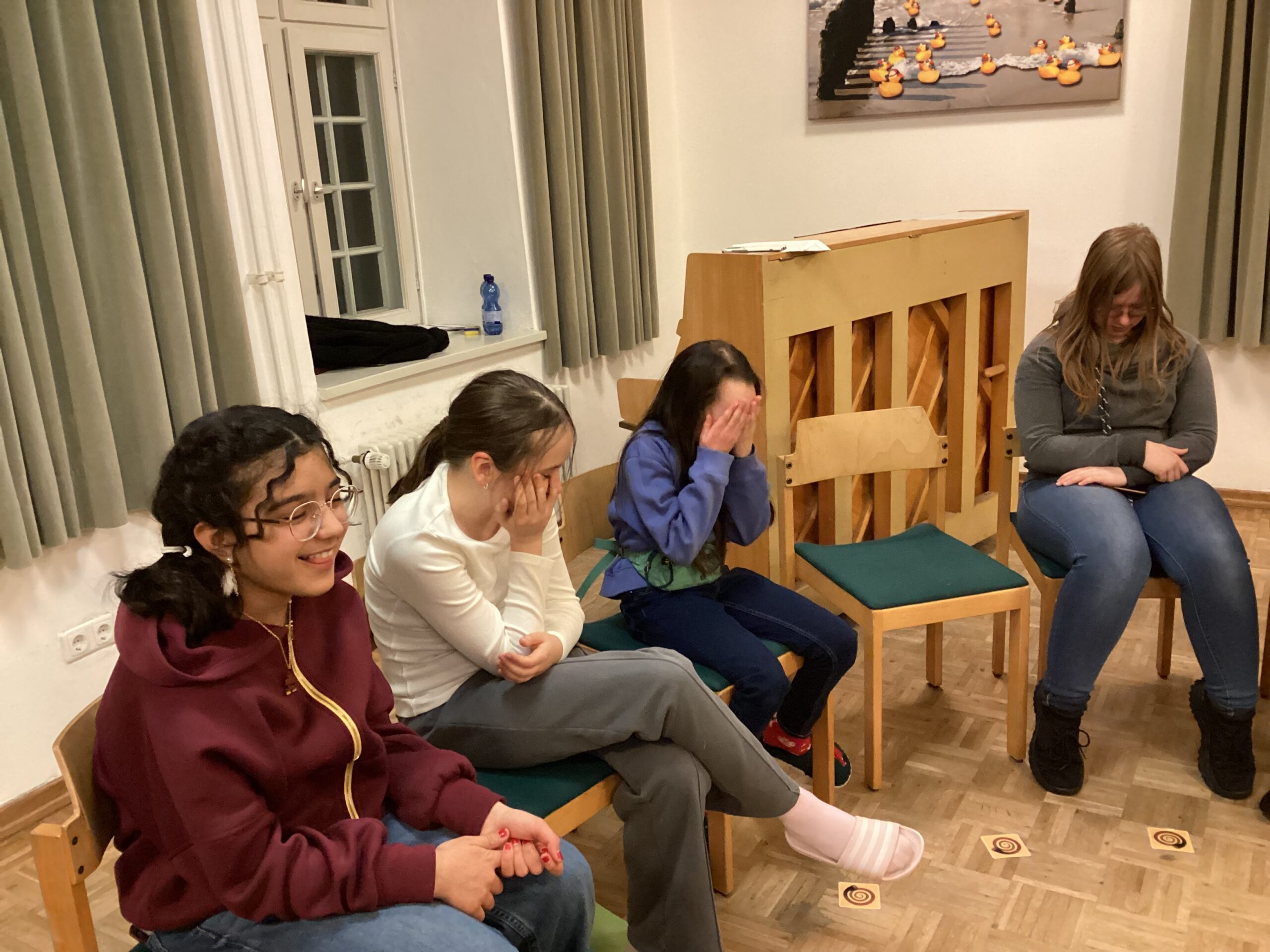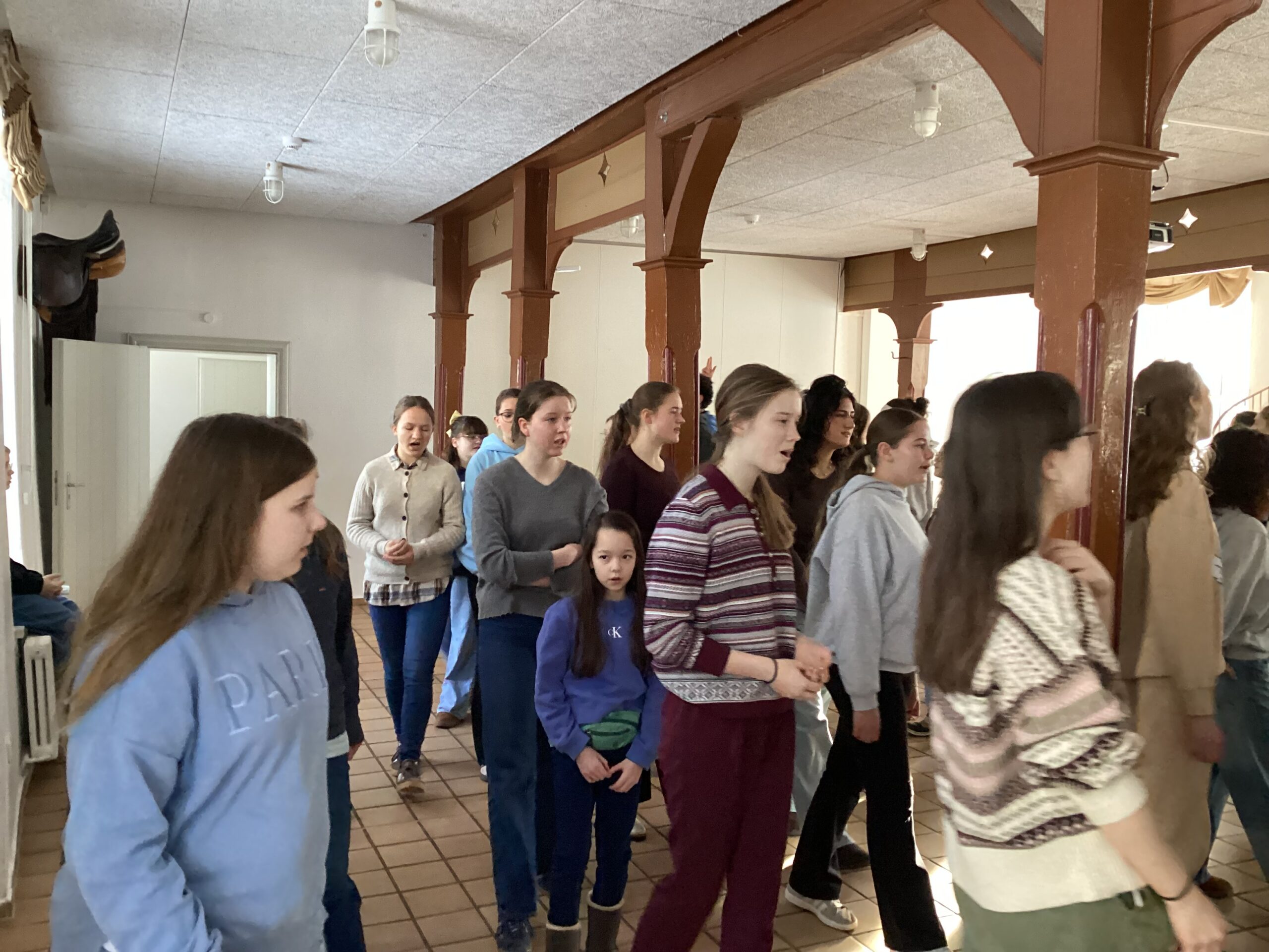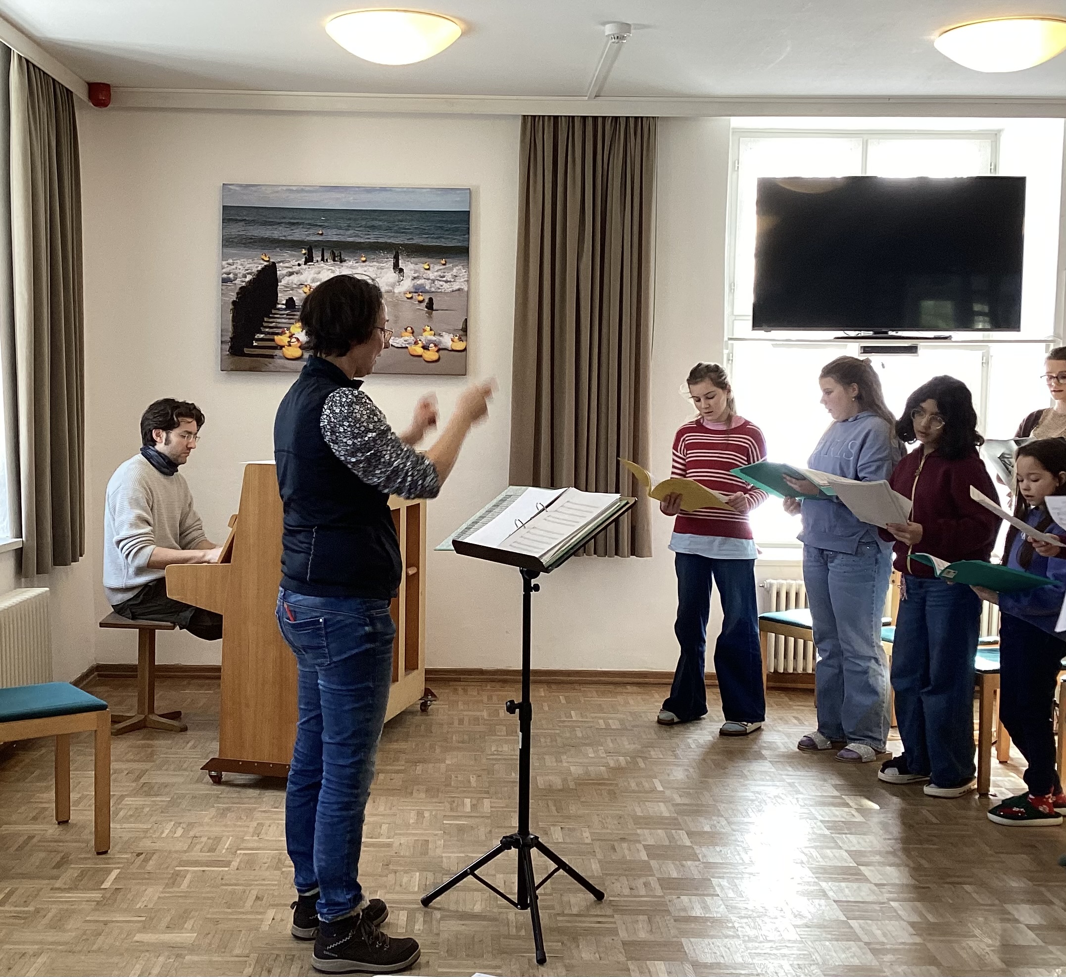 Aber jetzt mal ganz von vorne: Hingekommen sind wir mit Bus, Zug und Taxen. Da es so viele Kinder waren, gab es zwei Gruppen: Gruppe A und Gruppe B. Als die Chor-AG angekommen ist, bezog jeder erst einmal sein Zimmer, die größeren Schüler/-innen wurden im Inspektorenhaus untergebracht und die jüngeren im Reitstall (ein renovierter Reitstall). Kurz danach ging es mit Proben und Essen weiter (es gab Nudeln mit Gulasch/veganes Gulasch). Am gleichen Tag noch gab es eine Wanderung zum nahe gelegenen Strand. Ein schöner Ausflug mit tollen Aussichten. Nach kurzen Proben und Pausen ging es weiter mit dem Abendessen und danach mit dem Spieleabend, wo man viele neue Spiele kennenlernte. Dann ging es pünktlich um 22 Uhr zu Bett.